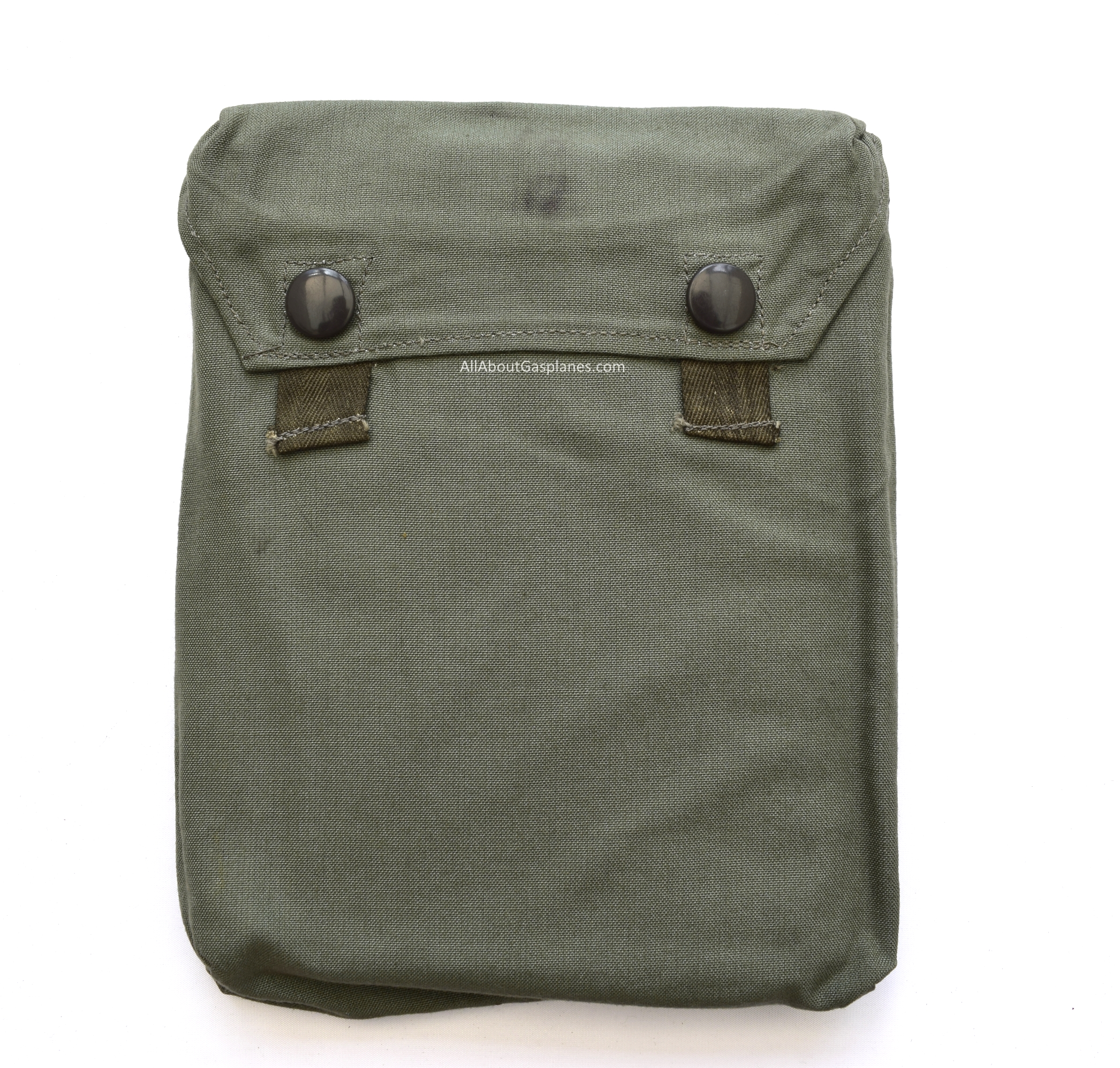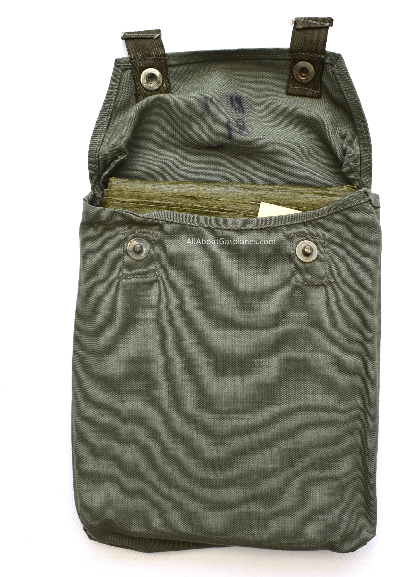 The bag and cape exhibit a subtle concave shape, not readily apparent in photographs. This curvature suggests prolonged attachment to a gas mask canister,