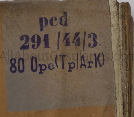 The final information shown; Mo Ap, I think are abbreviations for the materials or chemicals used during manufacture. I have reached this conclusion by reviewing labels of other Gasplane’s especially those made for Tropical and Arctic environments because in the examples seen they have Ope which is an abbreviation for Oppanol and similarly Ly for Lyafol. Unfortunately I have not yet found out what the abbreviation Mo Ap is for so if you do know please get in touch.
